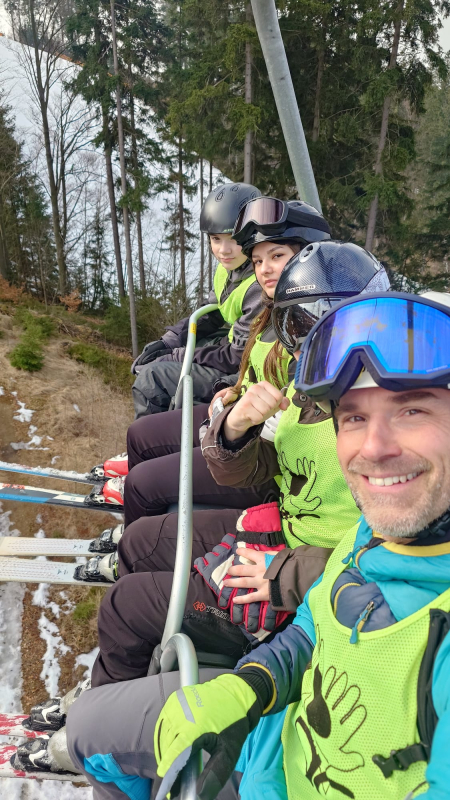 Tak se konečně hlásíme z Jizerek, kde již 3. dnem probíhá školní lyžák. Dopoledne chodíme všichni, odpoledne ti co chtějí. Vznikl tým snouborďáků všech úrovní a tři skupiny lyžařů dle úrovní - žlutí nováčci, oranžoví začátečníci a zelení pokročilí. Počasí nám skvěle vychází - zatím ani kapka. Večery jsou buď relaxační nebo s přednáškou. Pro ilustraci atmosféry pár fotografií...